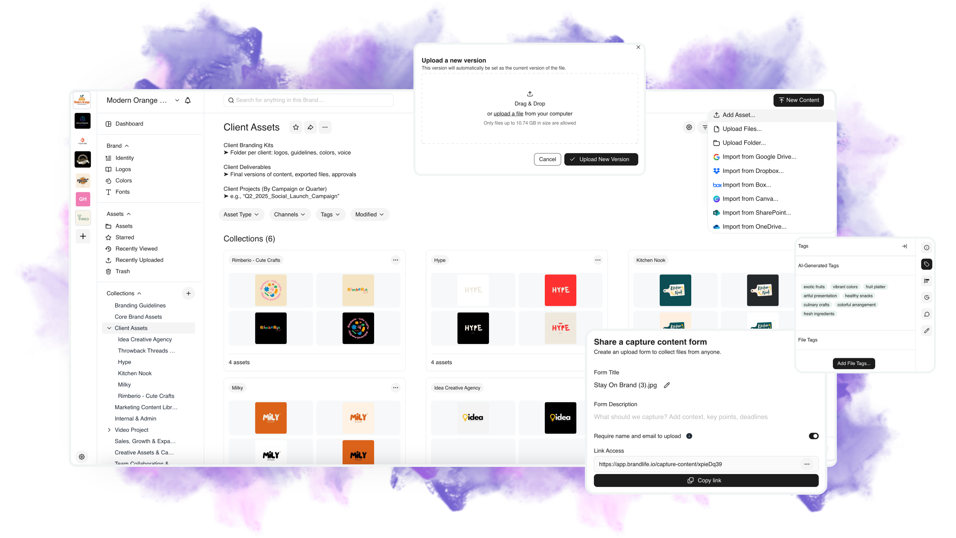 One place for every campaign, logo, video, and file — powered by intelligent organization and seamless collaboration.